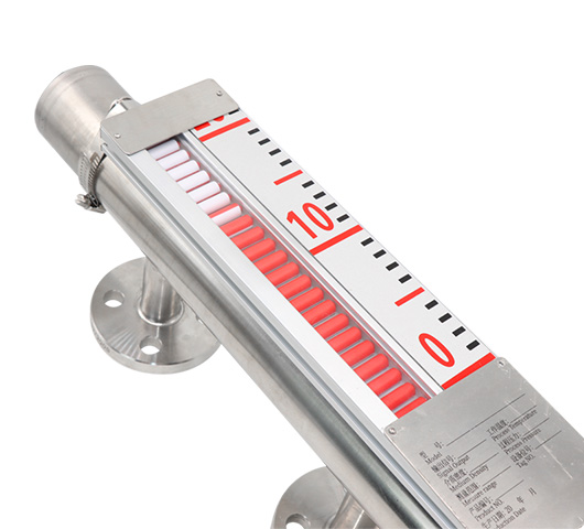 液位計(jì)安裝完畢后,需要用磁鋼進(jìn)行校正對(duì)翻柱導(dǎo)引一次使零位以下顯示紅色,零位以上顯示白色;