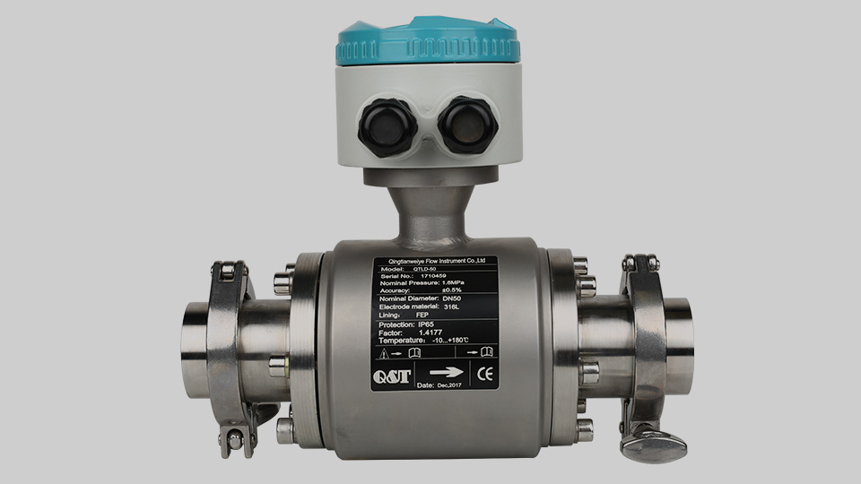 STLD卡箍式電磁流量計根據(jù)法拉第電磁感應(yīng)定律進(jìn)行流量測量。電磁流量計的優(yōu)點(diǎn)是壓損極小,可測流量范圍大。更大流量與更小流量的比值一般為20:1以上,適用的工業(yè)管徑范圍寬,輸出信號和被測流量呈線性,精度較高,可測量電導(dǎo)率≥5μs/cm的液體。 QTLD電磁流量計卡箍式安裝方式具有安裝、清洗方便等優(yōu)點(diǎn),常應(yīng)用于食品生產(chǎn)、制藥行業(yè)藥劑測量以及凈水監(jiān)測等場合。
